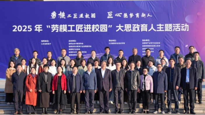 11月11日,由江苏省教育厅指导,我校承办的“劳模工匠进校园”大思政育人主题活动在我校图书馆报告厅举行。江苏省教育厅原副巡视员、省职业技术教育学会常务副会长尹伟民,江苏省住房和城乡建设厅执业资格考试与注册中心主任、省建设行指委副秘书长高峰,江苏省住房和城乡建设厅原二级巡视员、省建筑与历史文化研究会常务副会长章小刚,校党委书记朱东风,党委副书记、校长沈士德等领导出席活动。来自全省住建系统行业组织负责人、省职业院校的师生代表、马克思主义学院全体教师等近200人参加活动。